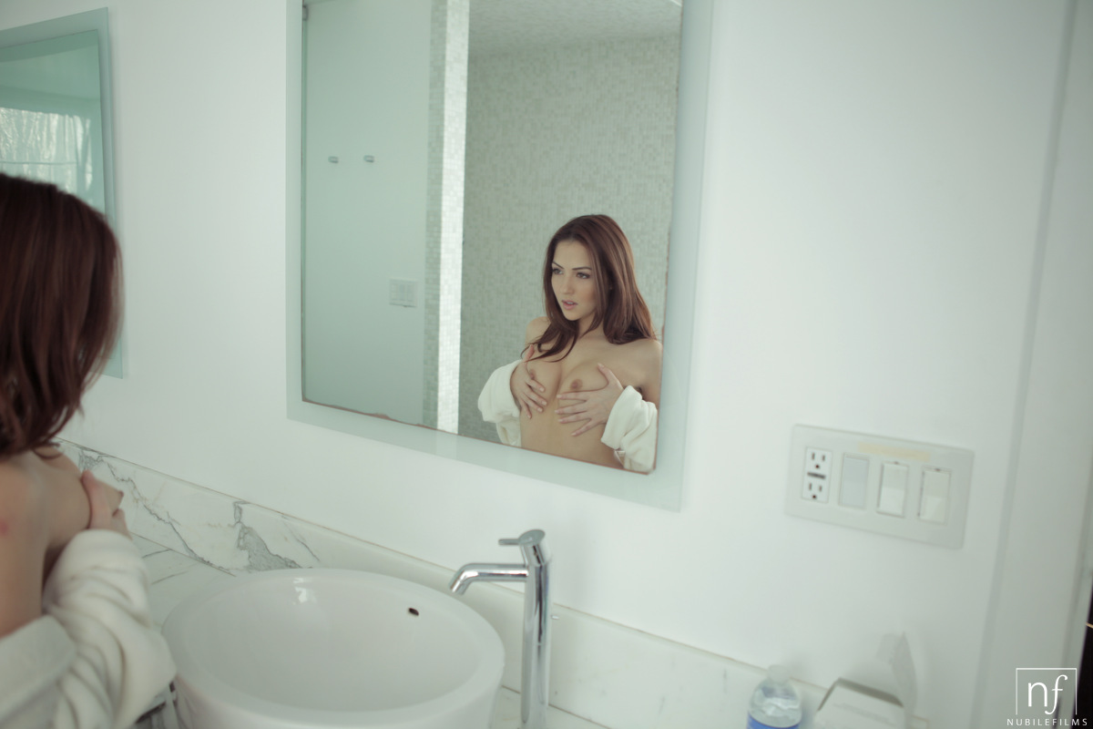 She gets wet and looks hot when this redhead takes off her robe then gets in the shower to wash her fine body.