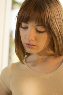 Sweet chick takes off her clothes to prove she wears no lingerie and to caress her shaved pussy as well